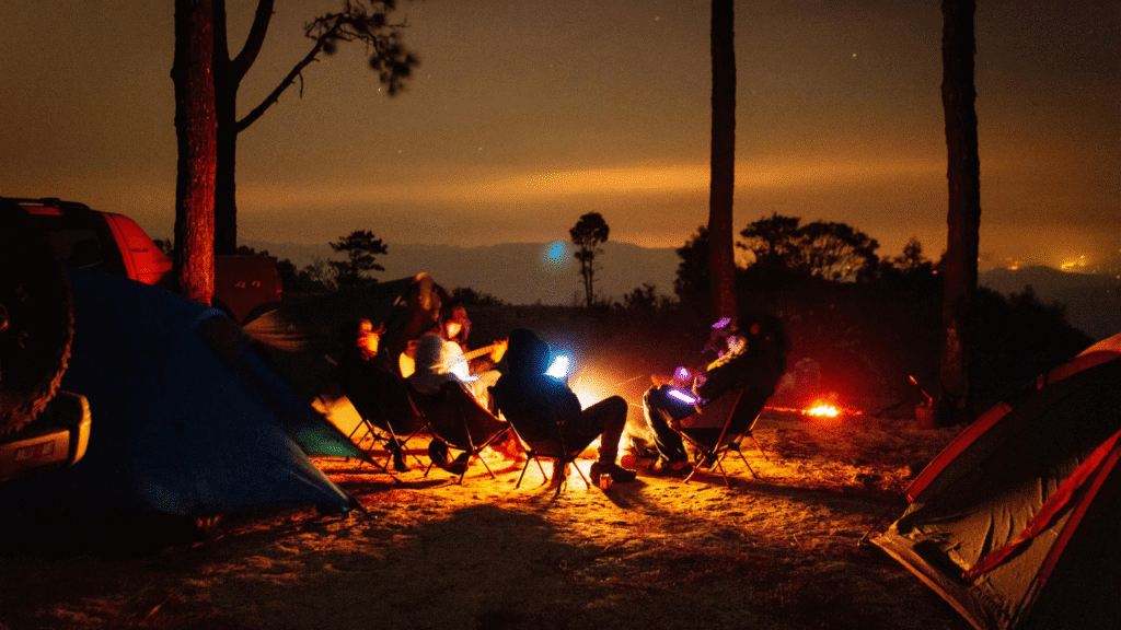 पर्वतारोहण , कैंपिंग कीजिए ।